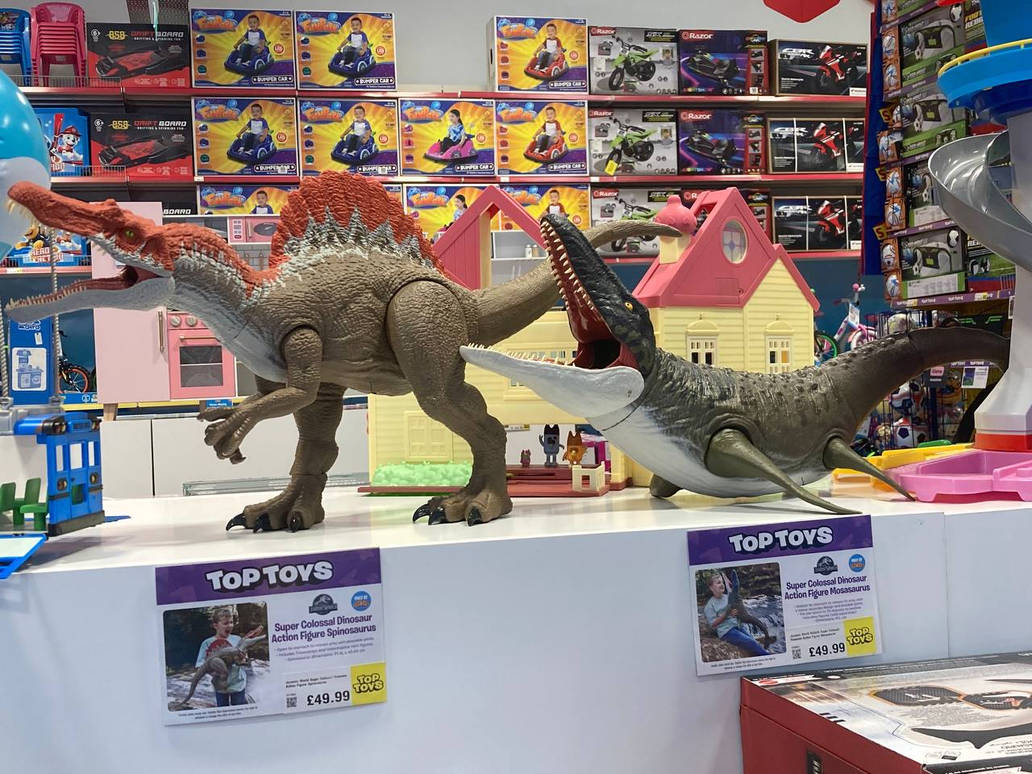 Once I met up with Wolfie we travelled suuuuuuuuuuuuuuper far out to a Smyths. Which was amazing because it was huge! Saw lots of fun toys. This was also my first time seeing the Jurassic World Rebirth Spinosaurus up-close and getting to try its animatronic features…omg…I wanted to come home with him so badly haha. All of the Rebirths toys are so insanely cool. I didn’t take his photo but this is the one I’m talking about