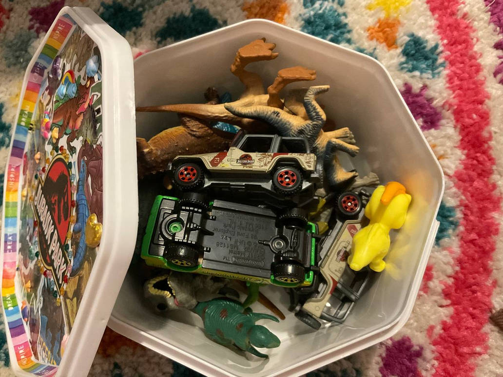 Had an old ice cream tub which was too nice to bin, so I made it into a place to keep my small dinosaur toys!