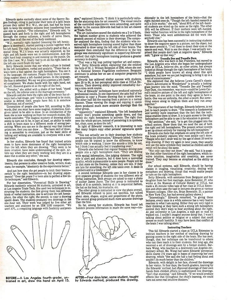 This article was published in the Los Angeles Times a few years before Drawing on the Right Side of the Brain was released.